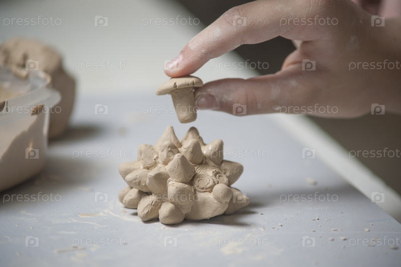 Девушка делает игрушку из глины