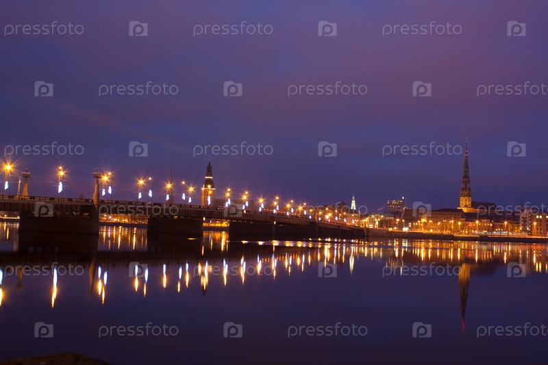 Мост через реку в ночное время