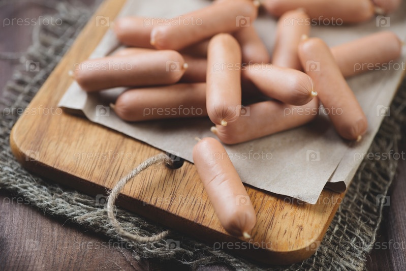 Сырые сосиски на разделочной доске