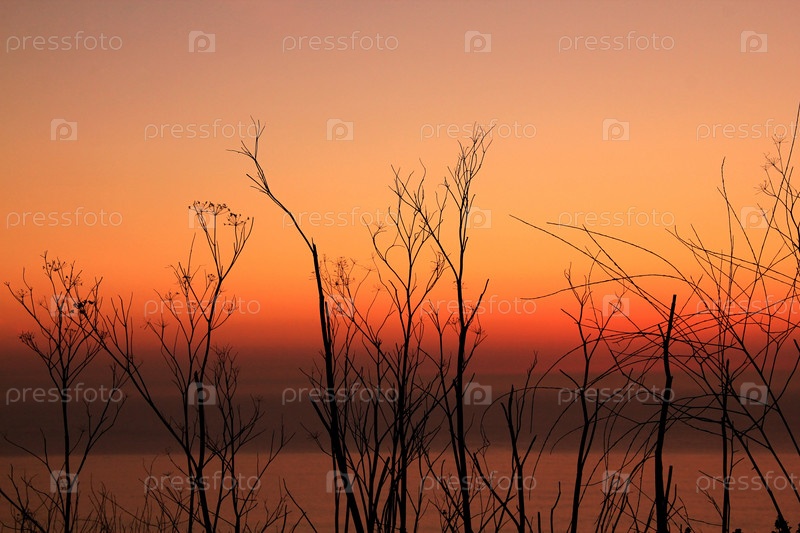 Сухие растения на закате