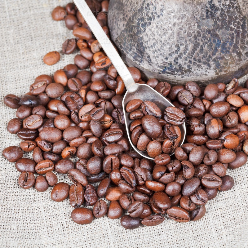 Жареный кофе в зернах и турка