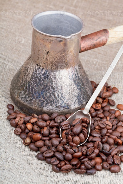 Жареный кофе в зернах и турка