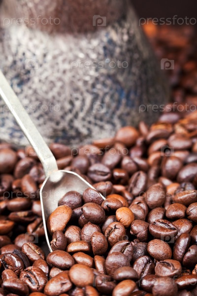 Жареный кофе в зернах и турка