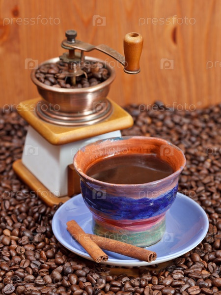 Чашка кофе и жареные бобы
