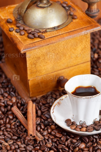 Чашка кофе и жареные бобы