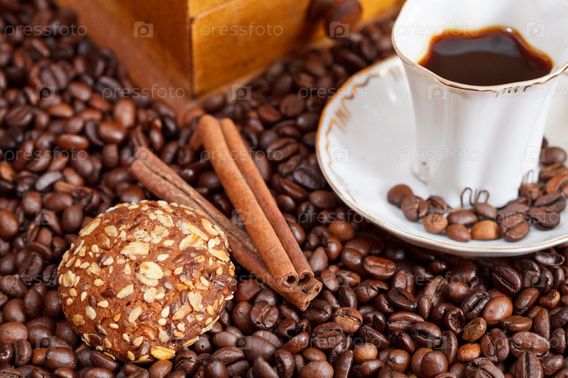 Чашка кофе и жареные бобы