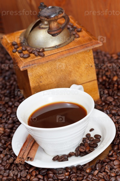 Чашка кофе и жареные бобы
