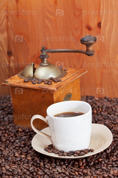 Чашка кофе и жареные бобы