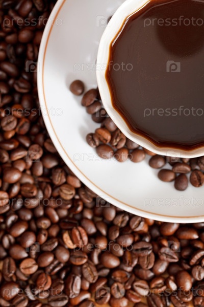 Чашка кофе и жареные бобы