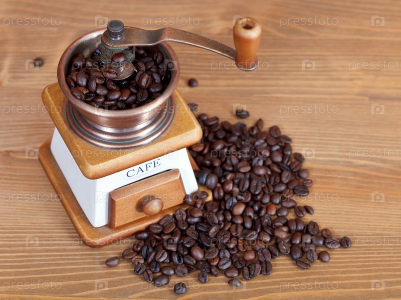 Кофе и винтажная ручная мельница