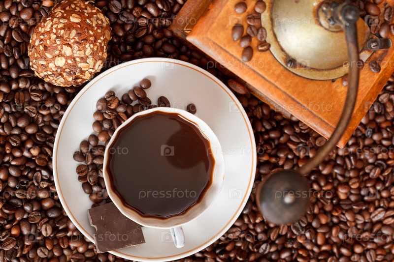 Чашка кофе и жареные бобы