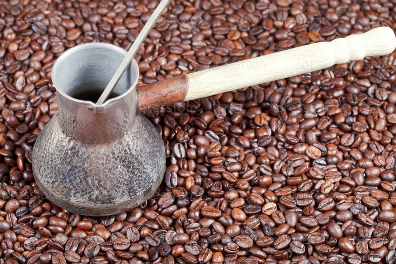 Жареный кофе в зернах и медная турка