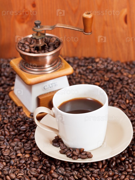 Чашка кофе и жареные бобы