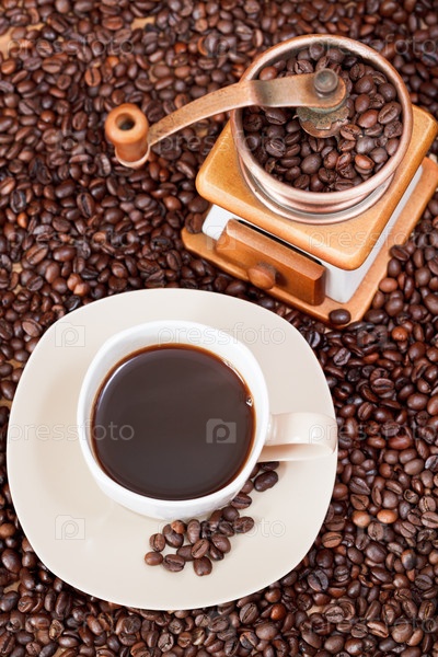 Чашка кофе и жареные бобы