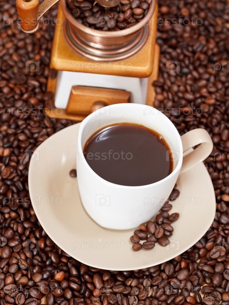 Чашка кофе и жареные бобы