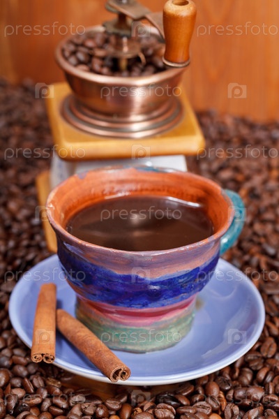 Чашка кофе и жареные бобы