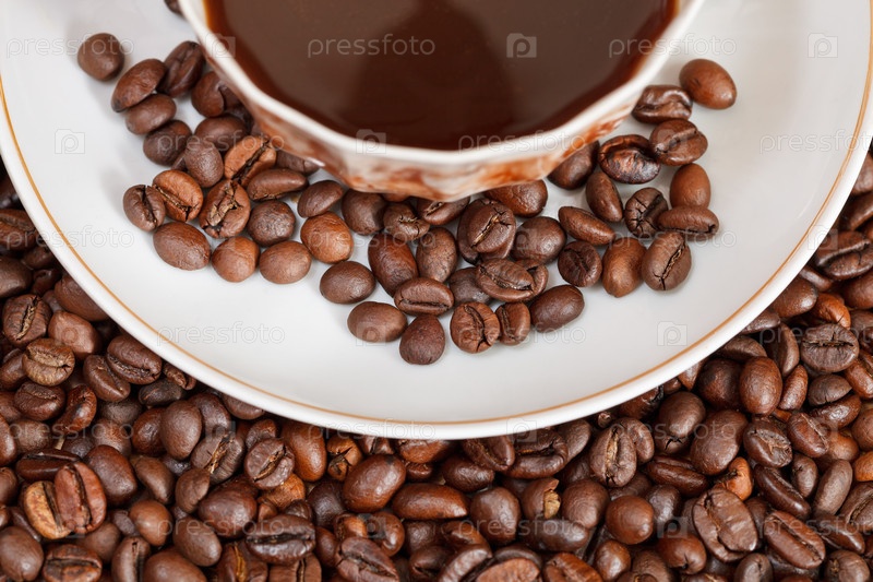 Чашка кофе и жареные бобы