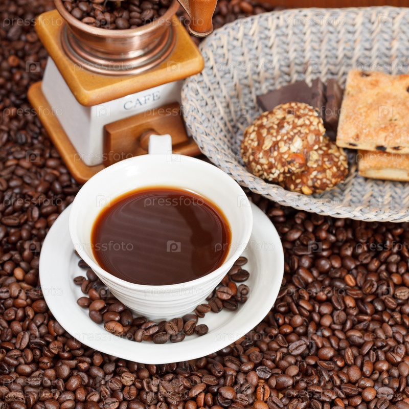 Чашка кофе и жареные бобы