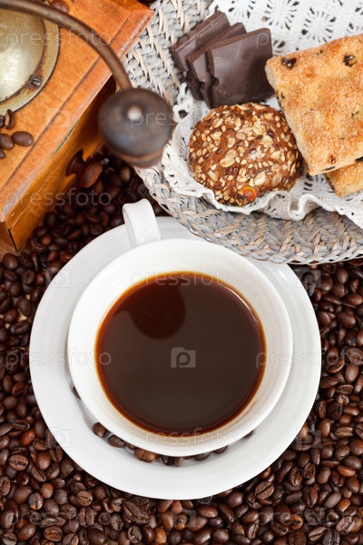 Чашка кофе и жареные бобы