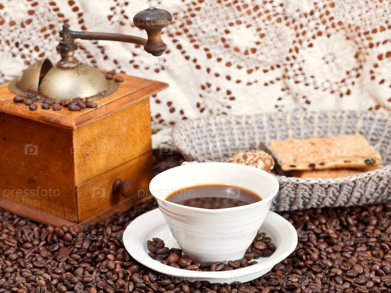 Чашка кофе и жареные бобы