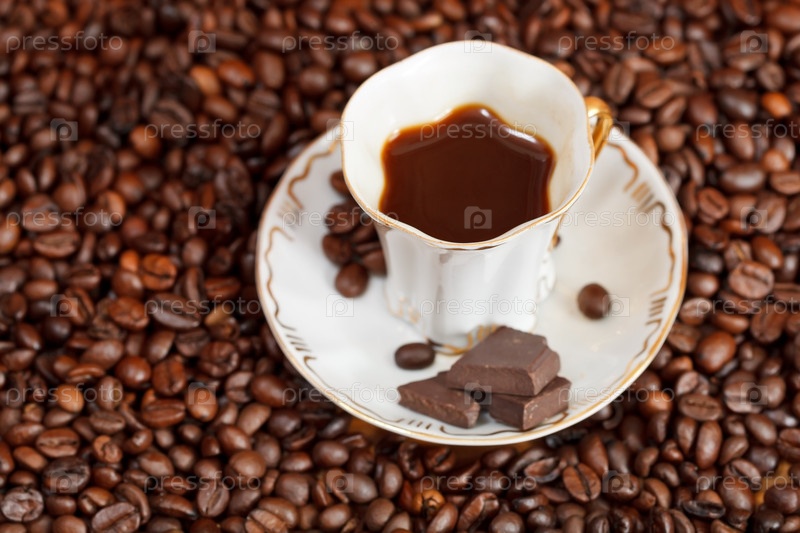 Чашка кофе и жареные бобы