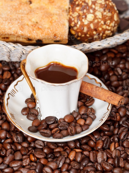 Чашка кофе и жареные бобы