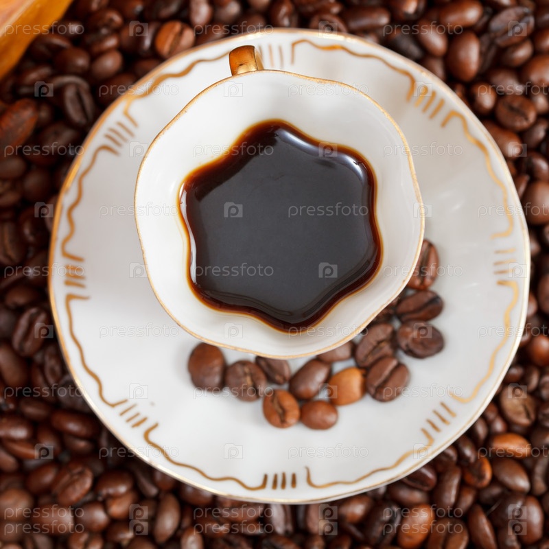 Чашка кофе и жареные бобы