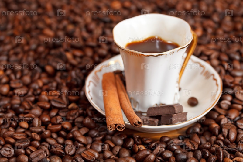 Чашка кофе и жареные бобы