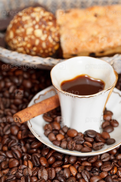 Чашка кофе и жареные бобы