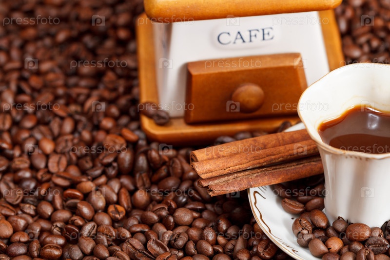 Чашка кофе и жареные бобы