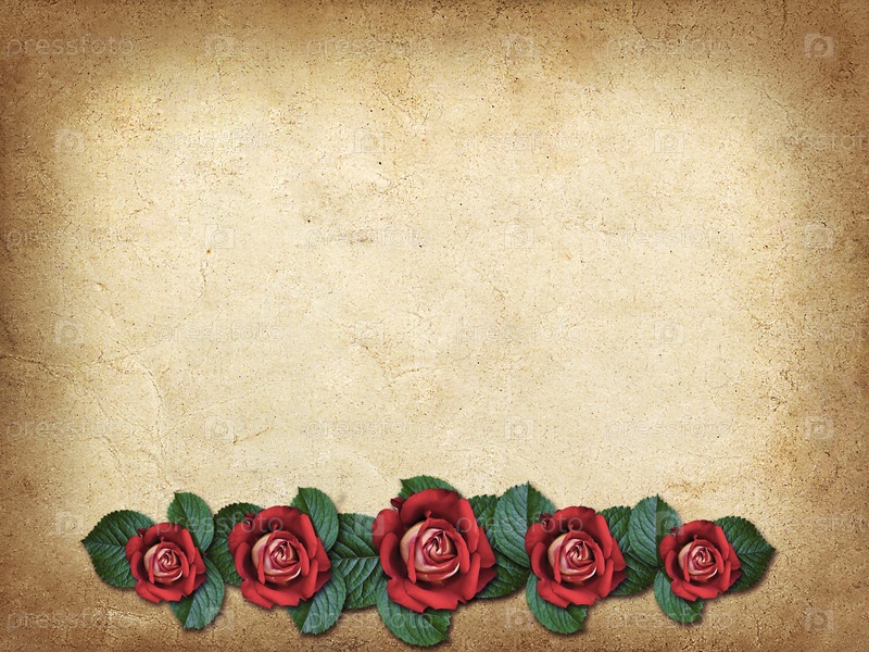 Винтажная открытка для поздравления с тремя красными розами в винтажном стиле