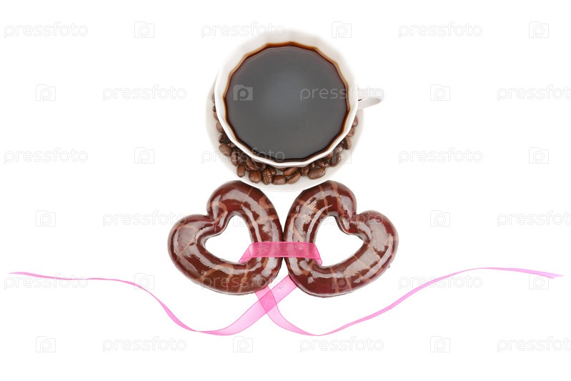 Печенье в форме сердца с чашкой кофе
