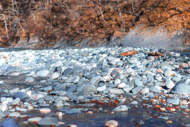 Белые камни в горной реке в солнечный день