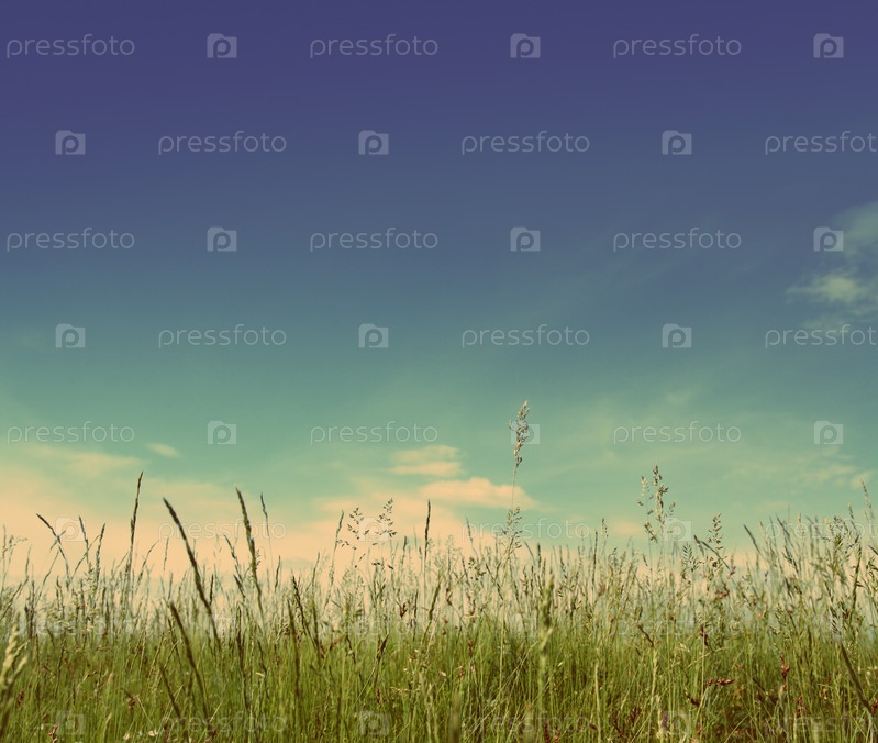 Зеленая трава под голубым небом - ретро-стиль