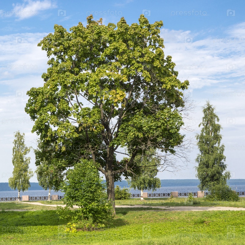 Большое дерево на городской набережной