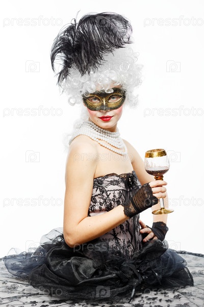 Принцесса в черном платье с бокалом вина