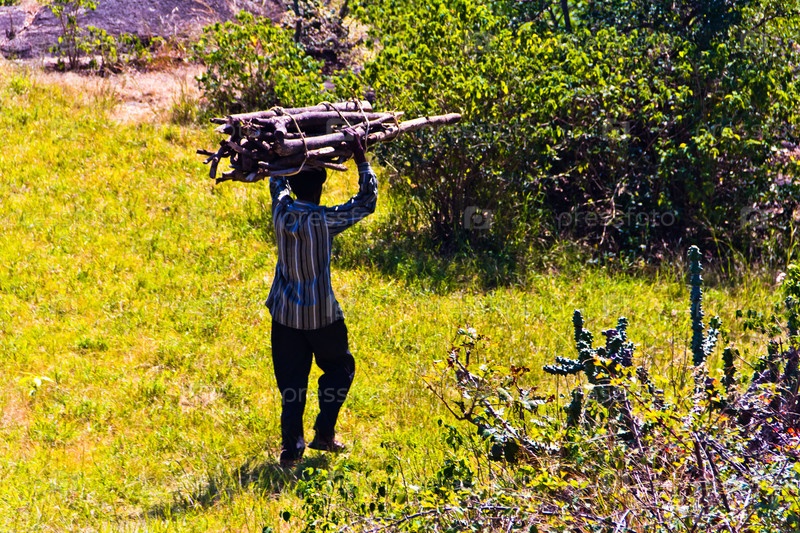 Человек несет дрова на голове в Индии