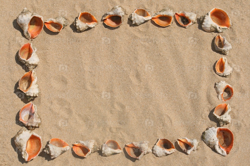 Рисунок из ракушек, выложенный на песке