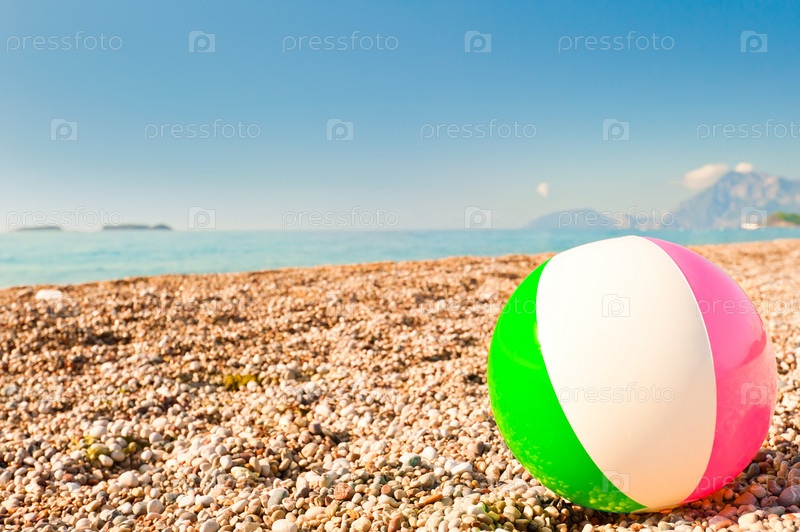Надувной мяч на галечном пляже