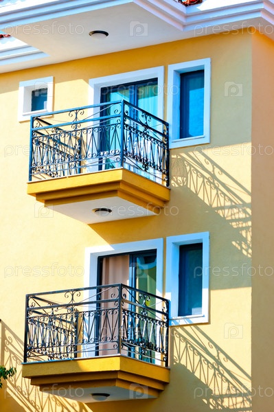 Два небольших балкона на желтом доме