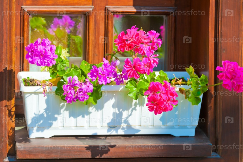 Горшок с розовыми цветами на подоконнике