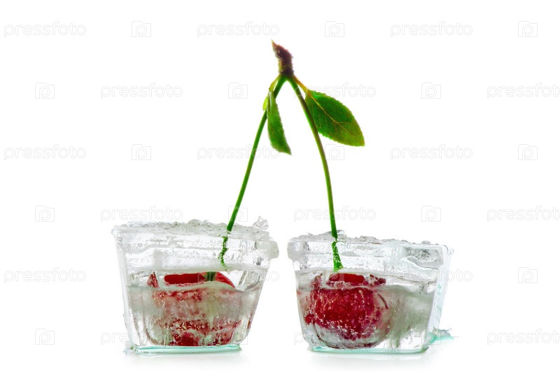Два кубика льда с вишней