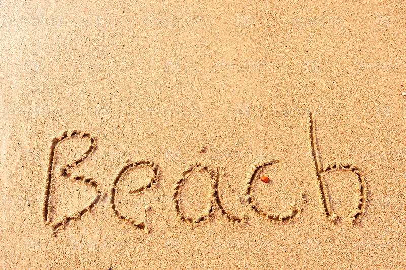 Слово BEACH на мокром песке