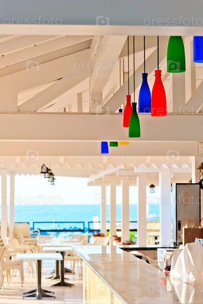 Бар с разноцветными лимпами на пляже