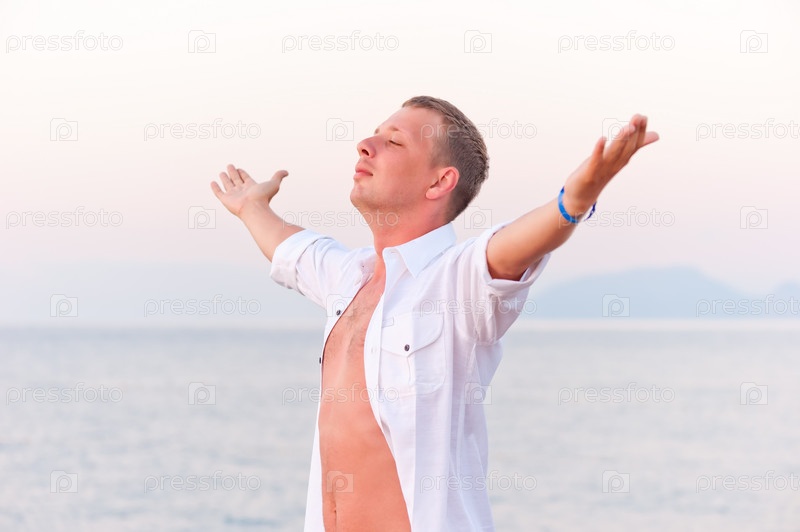 Мужчина с раскинутыми руками наслаждается свободой