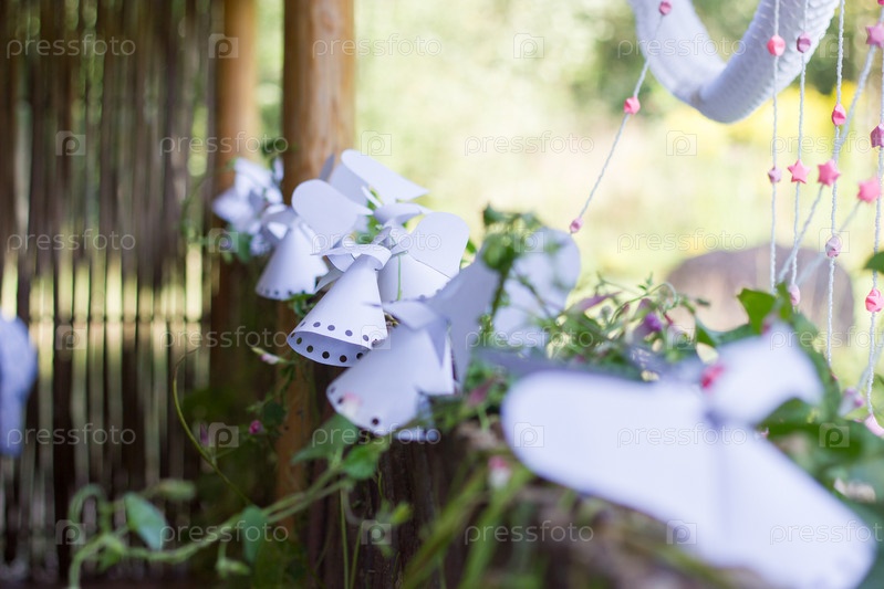 Бумажные ангелы и звезды на заборе