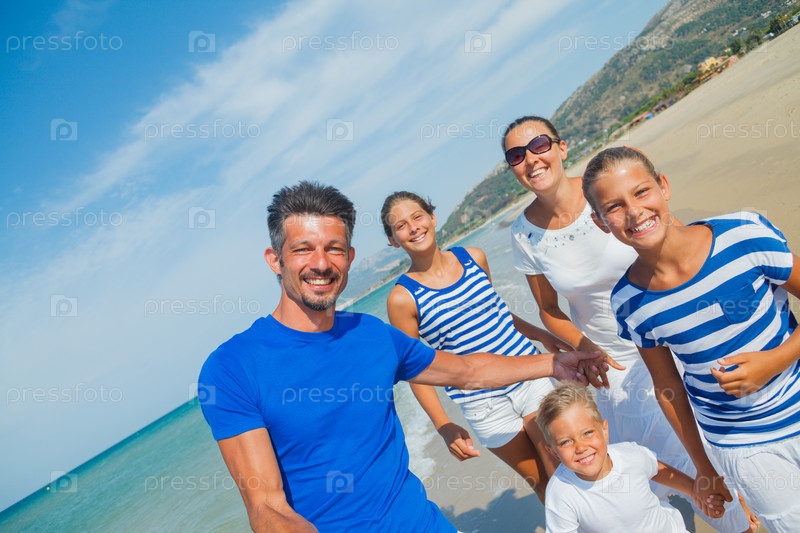 Семья отдыхает на пляже