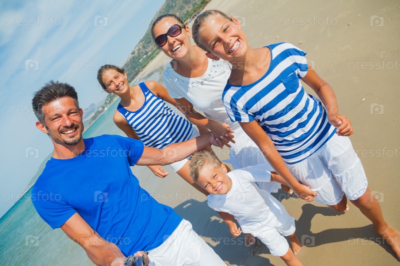 Семья развлекается на пляже
