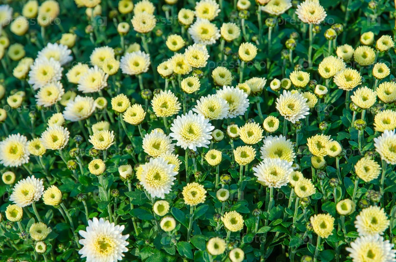 Белые горшечные хризантемы