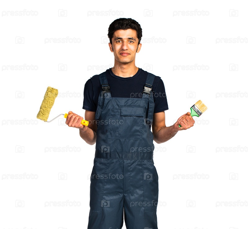 Ремонтник арабской национальности в комбинезоне на белом